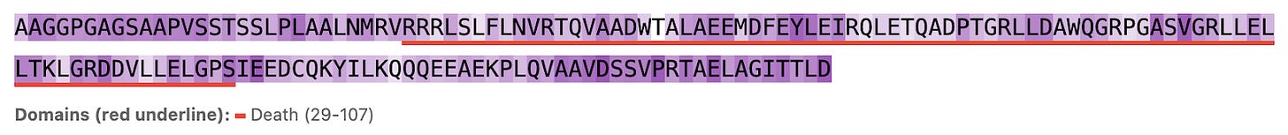 The upshot of this is that for many proteins the conserved domain is the part that’s easily druggable because it’s functional (this is also why drugs can affect the behavior of multiple targets, and why drug selectivity can be so challenging), but regions outside those domains are more likely to be unique. If we think Hermes understands druggable pockets, it should look at the domains doing the enzymatic activity, but if we think Hermes is just memorizing protein ID, it should look at those unique regions outside the domains.